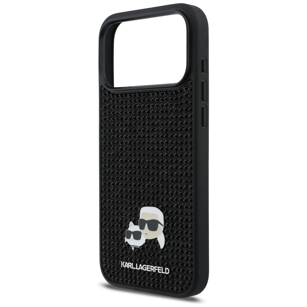 Kolekcja Rhinestones Karl&Choupette Pin to połączenie elegancji i luksusu. Etui ozdobione jest cyrkoniami, a na jego powierzchni znajduje się pin przedstawiający postacie Karla Lagerfelda i jego ukochaną kotkę Choupette. Na dole etui widnieje subtelne logo KARL LAGERFELD, które dopełnia cały design.