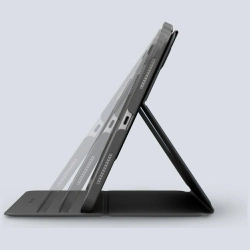 Etui posiada specjalne, antypoślizgowe rowki, które umożliwiają ustawienie iPada pod różnymi kątami. Dzięki temu łatwo znajdziesz idealną pozycję do rysowania, pisania, czytania czy oglądania materiałów wideo. Konstrukcja została zaprojektowana tak, by zapewnić maksymalny komfort użytkowania niezależnie od sytuacji. Ruchome elementy utrzymują się stabilnie, nie ślizgają się ani nie przesuwają, co zwiększa bezpieczeństwo i wygodę codziennego użytkowania.