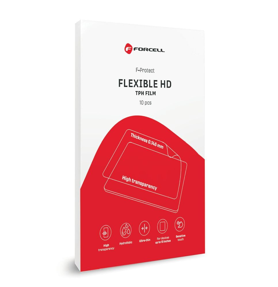 Forcell Flexible HD to ultra-cienka folia ochronna o wysokiej przejrzystości, zaprojektowana z myślą o skutecznej i niemal niewidocznej ochronie ekranu. Dzięki zastosowaniu elastycznego materiału doskonale dopasowuje się do różnych typów powierzchni. Przeznaczona do urządzeń o przekątnej do 13 cali, może być montowana również na mokro.