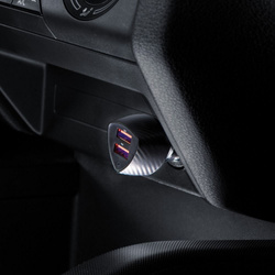 Niezwykle funkcjonalna ładowarka samochodowa z serii FORCELL CARBON. Wyposażona w podwójny port ładowania USB. Wspiera protokół szybkiego ładowania QC 3.0. Posiada kilkustopniowy system zabezpieczeń.