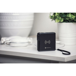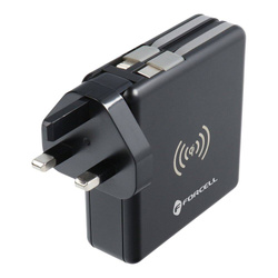 Doskonały zestaw podróżny: wielofunkcyjna ładowarka FORCELL 5w1. Wyposażona w złącza USB-C i USB-A oraz power bank. Pozwala na ładowanie bezprzewodowe.