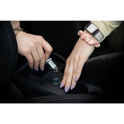 Forcell F-Energy Mini wyróżnia się niewielkim rozmiarem, który pozwala na eleganckie licowanie ładowarki w gnieździe zapalniczki samochodowej. To sprawia, że jest ona dyskretna i nie zaburza estetyki wnętrza pojazdu, będąc zawsze gotową do użycia. Co więcej, znajdujące się w górnej części ucho ułatwia zarówno samo korzystanie z ładowarki, jak i jej przenoszenie.