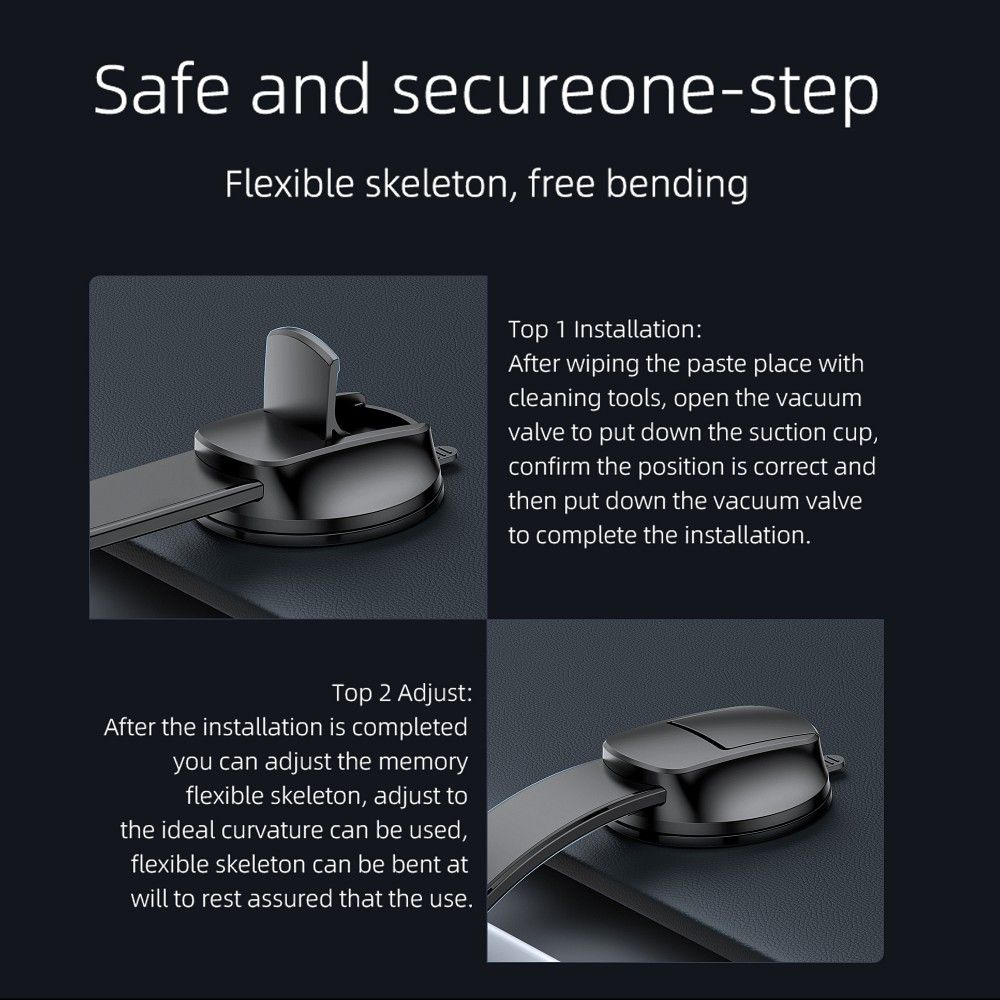 Uchwyt jest uniwersalny i pasuje do różnych powierzchni – zestaw składa się z części, które umożliwiają zamocowanie uchwytu zarówno na szybie, jak i desce rozdzielczej.Wybór miejsca zgodnego z własnymi preferencjami zapewnia spokojną i komfortową podróż.