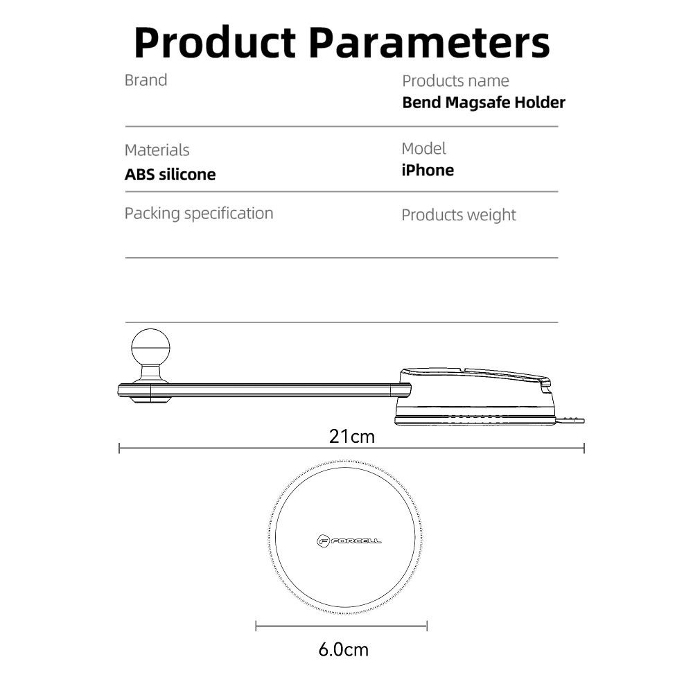 Uchwyt obsługuje urządzenia wspierające technologię MagSafe oraz te, które takiego wsparcia nie posiadają. Do zestawu dołączono metalowe blaszki, które umożliwiają montaż magnetyczny telefonu, który nie posiada wbudowanego magnesu.