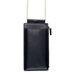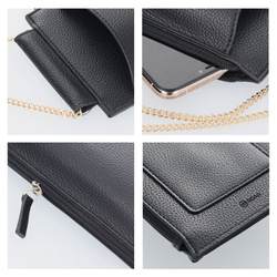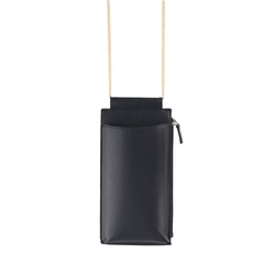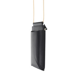 Futerał został wykonany ze skóry ekologicznej wykończonej przeszyciami. Prezentuje się bardzo elegancko i stanowi szykowny dodatek do codziennej oraz wieczorowej stylizacji. Długi łańcuszek (ok 55 cm) pozwala wygodnie zawiesić futerał na szyi tak, by telefon pozostawał bezpiecznie w zasięgu wzroku.