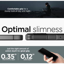 Etui z serii Tough Armor marki Spigen jest nowym pokrowcem firmy. Jego dwuczęściowa budowa wykonana jest z tworzywa termoplastycznego odpornego na ścieralność oraz wzmacniającej ramki poliwęglanowej. Wewnątrz pokrowca znajduje się wypełnienie w postaci pianki technologicznej, która zapewnia dodatkową warstwę ochronną od uderzeń, czy upadku urządzenia.