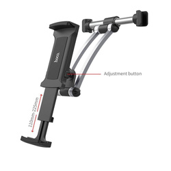 Nowoczesny uchwyt samochodowy. Mocowany bezpośrednio do ramion zagłówka fotela samochodowego. Ułatwia oglądanie filmów w czasie podróży. Uchwyt zapewnia pewny chwyt urządzenia w czasie ekstremalnej jazdy. Pozwala na ustawienie urządzenia na poziomie oczu. Montaż i demontaż zajmuje tylko chwilę. Gadżet jest kompatybilny z większością samochodów. Wyposażony w przycisk do regulacji, który pozwala dostosować parametry produktu do indywidualnych potrzeb. Specyfikacja: Materiał: ABS + stop aluminium + silikon Rozmiar: 175 * 185 * 65 mm Waga: 286 g Zakres uchwytu: 110-255 mm Dotyczy: telefonów komórkowych i tabletów