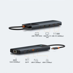 HUB 10w1 Baseus Metal Gleam Series USB-C do USB-C PD / USB-C / 3x USB-A / 2x HDMI / RJ-45 / SD / TF - czarny