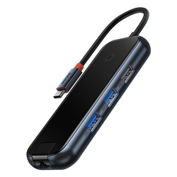 Hub 5w1 Baseus AcmeJoy series USB-C do 2xUSB 3.0 + USB 2.0 + USB-C PD + RJ45 (szary)