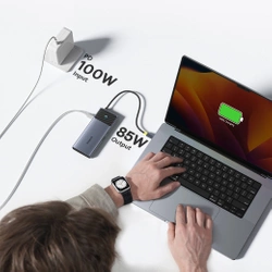 Nie musisz już czekać godzinami na naładowanie swojego laptopa. HUB Baseus Metal Gleam Series II 7w1 zapewnia szybkie ładowanie, które pozwala na pełne naładowanie MacBooka Pro w zaledwie 2 godziny, a MacBooka Air w 2,5 godziny. Aby osiągnąć optymalne wyniki, zaleca się użycie adaptera PD 100W i kabla PD. Teraz możesz szybko wrócić do pracy bez długich przerw na ładowanie.