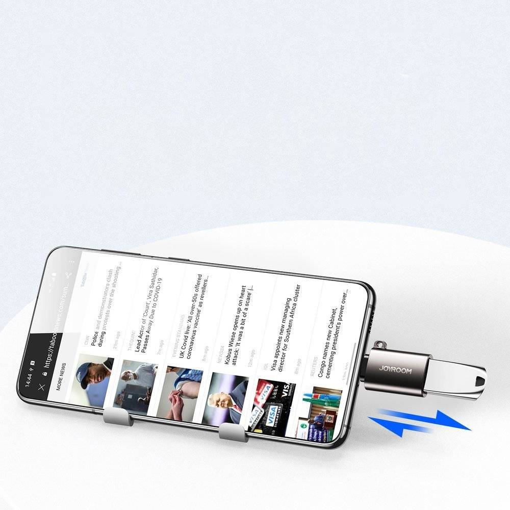 Stworzona przez markę Joyroom kompaktowa przejściówka ze złącza złącza USB 3.2 Gen 1 na USB Typ C. Wykonany z wysokiej jakości materiałów praktyczny adapter umożliwia podłączenie do smartfona (z technologią OTG) innych akcesoriów, w tym między innymi przenośnej pamięci, klawiatury lub kontrolerów do gier. Wszystko to znacząco wpływa na komfort użytkowania sprzętu. Standard USB 3.2 Gen 1 pozwala na transfer danych z prędkością do 5 Gbps.