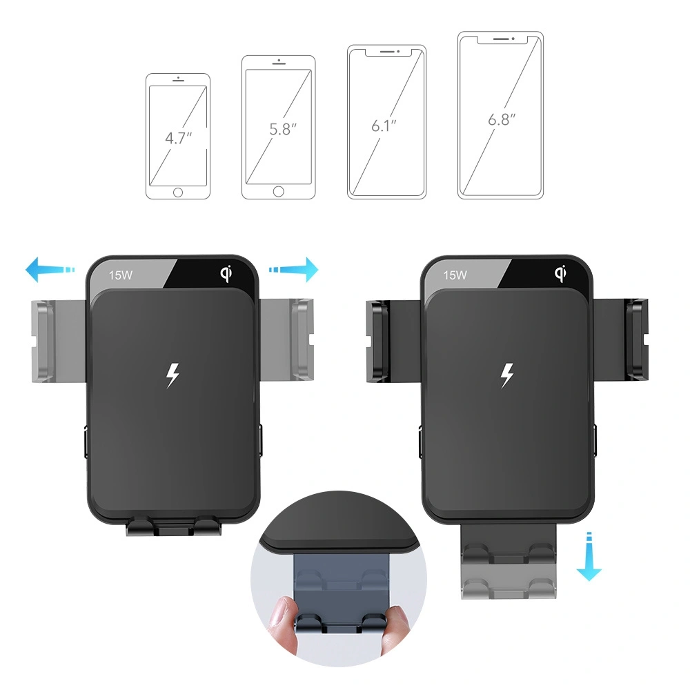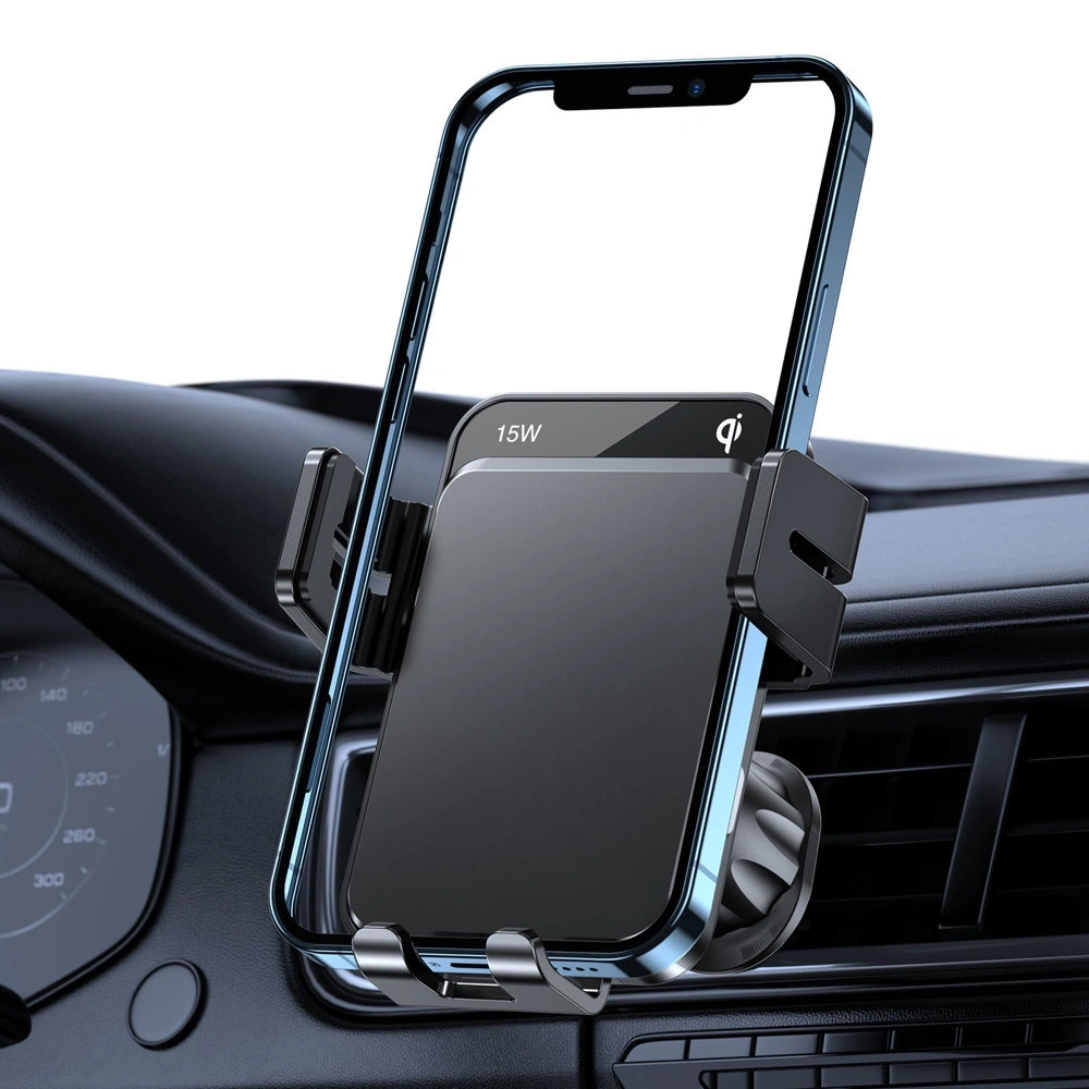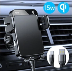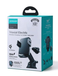 Joyroom bezprzewodowa ładowarka Qi 15W automatyczny elektryczny uchwyt samochodowy na kokpit deskę rozdzielczą / kratkę wentylacyjną czarny (JR-ZS219)
