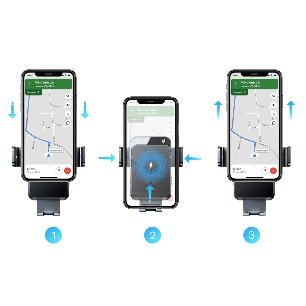 - Rodzaj: Uchwyt samochodowy z bezprzewodową ładowarką