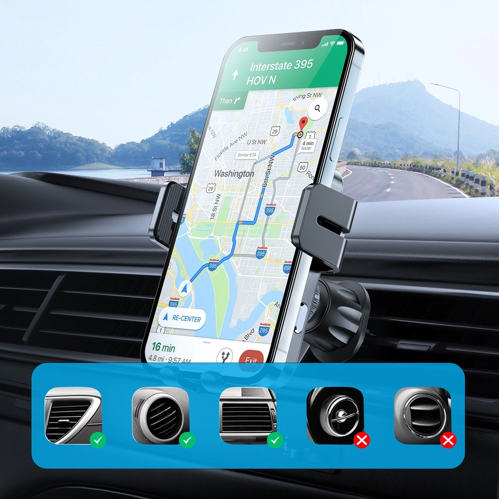 To, co odróżnia ten uchwyt od innych, to nowatorski, trójosiowy system montażu telefonu.