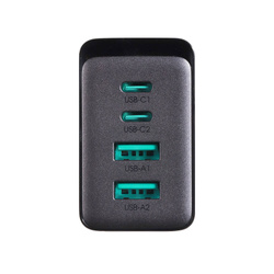 - Zasili w jednym momencie aż cztery urządzenia mobilne. Podłączysz np. dwa telefony, laptop oraz tablet do jednej ładowarki, oszczędzając miejsce w przedłużaczu sieciowym