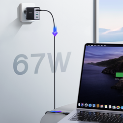 Szybka ładowarka GaN o mocy do 67W z portami 2 x USB i 2 x USB C Joyroom TCG02 + kabel USB C - USB C o długości 1,2 m i mocy do 100 W