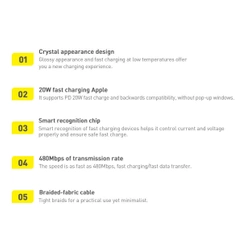 Kompatybilność ze standardem szybkiego ładowania USB Power Delivery pozwala na wiele szybsze naładowanie telefonów iPhone (modele z serii 8 i wyższe – X, XR, Xs, 11, SE2, 12, 13) oraz iPadów (Mini5 7.9 inch, Air3 10.5 inch, Pro 10.5 inch, Pro 12.9 inch i 8/10.2 inch). Kabel obsługuje również przesyłanie danych z prędkością do 480 Mbps. Co ważne, inteligentny układ sterowania kontroluje temperaturę urządzenia podczas ładowania. Masz więc pewność, że kabel Baseus Crystal Shine Series nie przegrzeje się nawet podczas intensywnej pracy.
