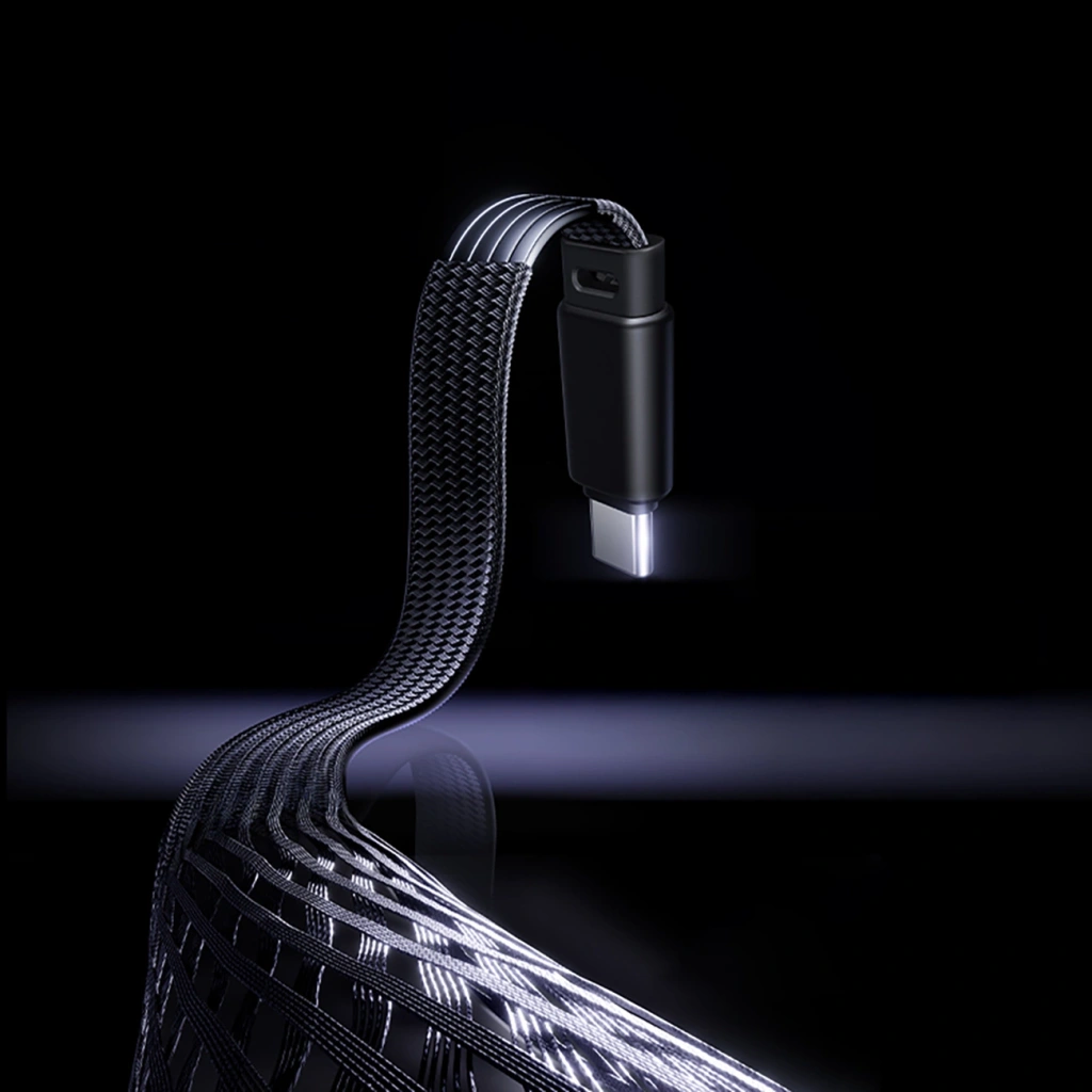 Baseus MVP 3 to wytrzymały kabel do szybkiego ładowania 100W, zaprojektowany z myślą o wygodnym korzystaniu z urządzeń podczas grania i multimediów. Charakterystyczna kątowa konstrukcja wtyczki zwiększa ergonomię, a nylonowy oplot gwarantuje wieloletnią trwałość. Wyróżnikiem kabla jest efektowne podświetlenie LED na końcówce, które ułatwia korzystanie w nocy i nadaje gamingowego charakteru. Stabilny transfer danych 480 Mb/s pozwala na sprawne przesyłanie plików, dzięki czemu kabel świetnie sprawdza się w codziennym użytkowaniu.