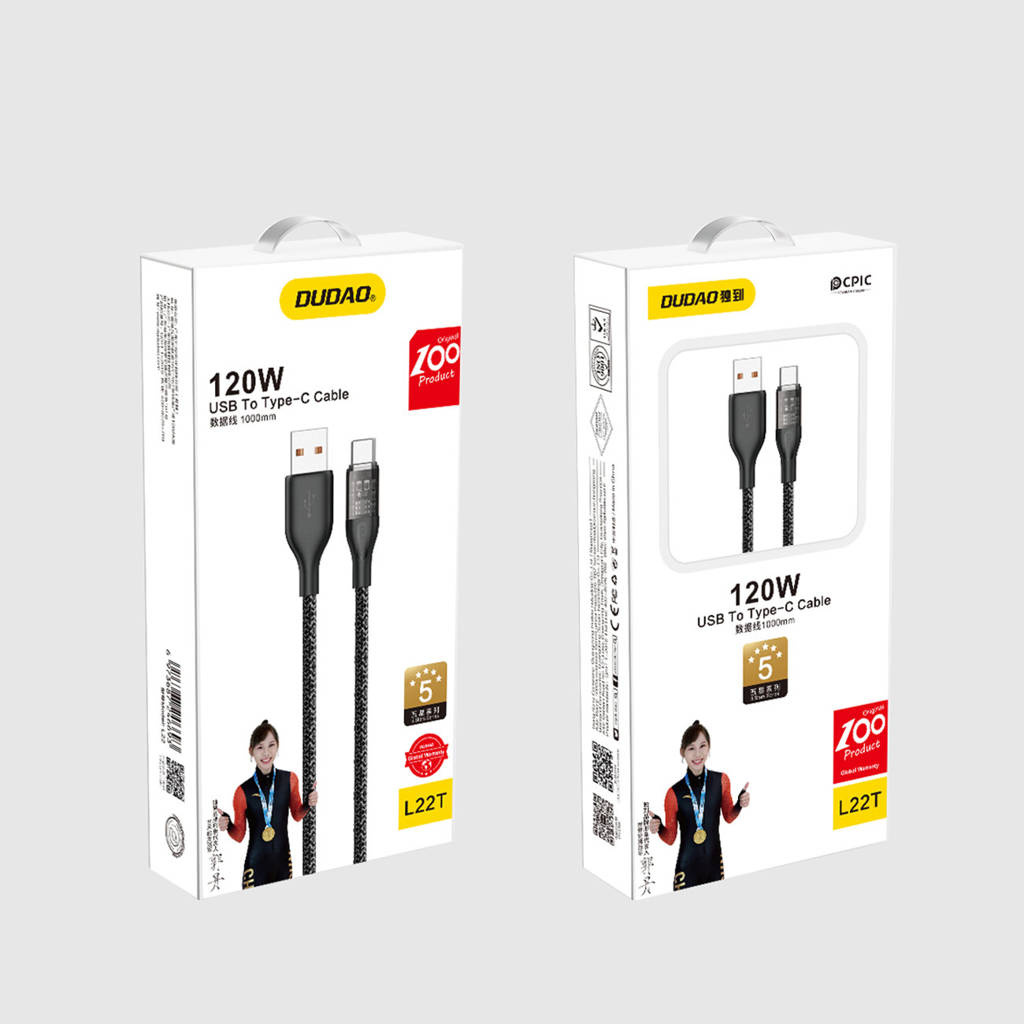 Dudao L22T kabel USB - USB-C do szybkiego ładowania 120W 1m - szary
