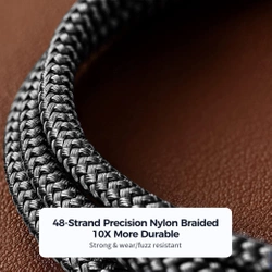 Jest trwały i odporny. Nylonowy oplot jest 10-krotnie trwalszy i odporny na zużycie. Wytrzyma aż 10000 zgięć.
