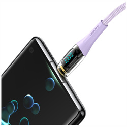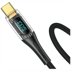 Wyposażony w czytelny cyfrowy wyświetlacz, na bieżąco prezentuje aktualną moc ładowania, co pozwala w łatwy sposób monitorować proces i upewnić się, że sprzęt korzysta z maksymalnych możliwości protokołu PD. Przezroczysta konstrukcja odsłania precyzyjnie wykonaną elektronikę wewnętrzną, nadając całości nowoczesny, techniczny charakter. Kabel ma długość 2 metrów, co gwarantuje swobodę korzystania z urządzeń nawet wtedy, gdy gniazdko lub ładowarka znajdują się w większej odległości. Jego pleciona, nylonowa powłoka wzmocniona aluminium i PVC znacząco zwiększa odporność na przetarcia, zginanie i uszkodzenia mechaniczne, co wydłuża żywotność produktu.