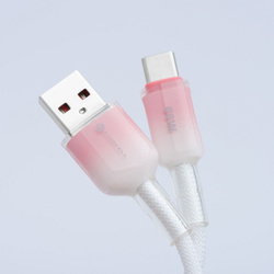 Uniwersalny kabel USB-A do USB-C o dużej mocy 66 W, który umożliwia szybkie i bezpieczne ładowanie smartfonów oraz tabletów. Subtelnie kolorowa końcówka wyróżnia kabel na tle standardowych modeli.