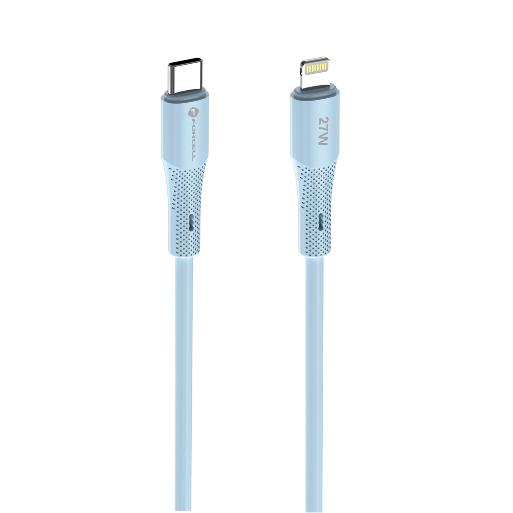 Uniwersalny kabel USB-C do Lightning o mocy 27 W, umożliwiający szybkie i bezpieczne ładowanie urządzeń Apple. Wykonany z miękkiego, elastycznego silikonu, który zapobiega plątaniu się kabla, zapewniając wygodę użytkowania.