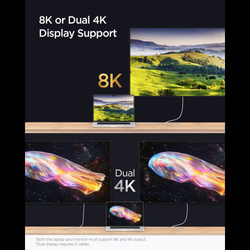 Dzięki wsparciu dla standardów Thunderbolt 3/4 kabel radzi sobie także z wymagającymi zadaniami — obsługuje przesył wideo w rozdzielczości 8K (single) / 4K (dual) przy użyciu DisplayPort 2.0, co czyni go świetnym wyborem do podłączania monitorów, laptopów lub stacji dokujących.