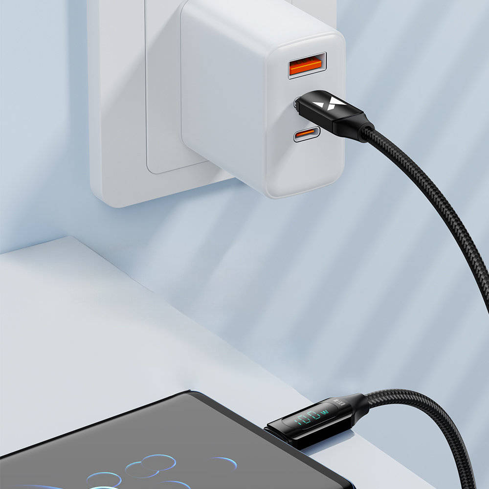 Jeśli poszukujesz kabla, który może naładować zarówno telefon, jak i tablet czy laptop, a do tego informuje o parametrach ładowania i jednoczesne przesyła dane – wybierz kabel marki Wozinsky. Może ładować mocą do 100 W i przesyłać zdjęcia czy filmy z prędkością 480 Mbps. Oplot kabla Wozinsky został wykonany z trwałego materiału, co sprawia, że jest odporny na skręcenia, zaplątania i uszkodzenia mechaniczne.