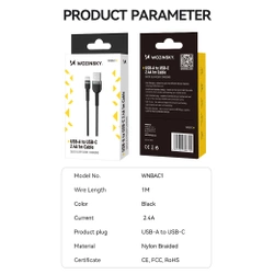 Kabel Wozinsky WNBAC2 ze złączami USB-A - USB-C 2,4A o długości 2 m - czarny