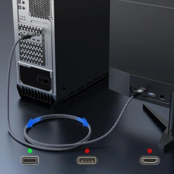 Kabel wspiera technologie HDR, HDCP i DSC, co gwarantuje bogate kolory, wysoki kontrast i pełną kompatybilność z najnowszymi monitorami i kartami graficznymi.