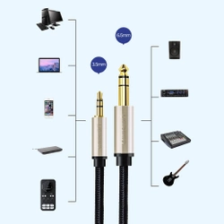 Kabel audio 3,5 mm do 6,35 mm UGREEN AV127 został wyposażony w pozłacane złącza, dodatkowe cynkowe osłony oraz plecioną powłokę. Dzięki temu nie tylko oferuje doskonałą jakość dźwięku, ale też wyróżnia się wytrzymałością i odpornością na uszkodzenia. Produkt jest kompatybilny z wieloma urządzeniami, możesz więc wykorzystać go do różnych zastosowań.