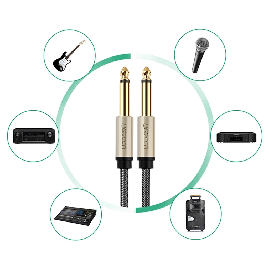 Kabel audio 6,5 mm do 6,35 mm UGREEN AV128 oferuje doskonałej jakości, czysty dźwięk. Jest kompatybilny z wieloma instrumentami i urządzeniami, dzięki czemu zapewnisz sobie nowe, niezapomniane muzyczne wrażenia. Wysokiej klasy posrebrzany przewodnik oraz pozłacane złącza gwarantują szybką, niezawodną transmisję sygnału.