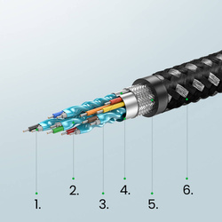 Kabel zachowuje swój oryginalny kształt nawet po długim czasie używania. Oplot kabla wykonany z wysokiej jakości PVC gwarantuje wysoką trwałość.