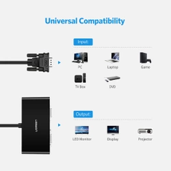 Wysokiej klasy rozdzielacz VGA UGREEN 40254 pozwala rozdzielać sygnał na 2 monitory, wyświetlacze czy projektory. Obsługując rozdzielczość 1920x1440, zachwyci Cię doskonałą jakością. System Plug&Play znacznie ułatwia obsługę urządzenia, a wykonana z tworzywa ABS obudowa zwiększa jego wytrzymałość.