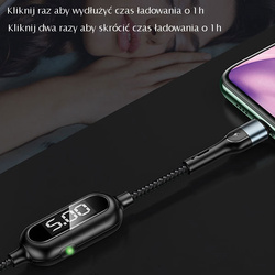 Kabel zapewnia duży komfort użytkowania, umożliwia szybkie ładowanie i wyświetlanie aktualnego napięcia/natężenia prądu i czasu ładowania.