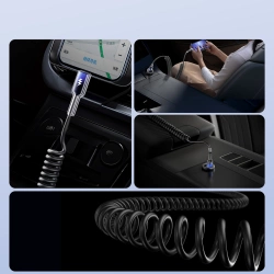 Dzięki wytrzymałym materiałom ABS i TPU oraz spiralnej konstrukcji kabel jest odporny na zginanie i uszkodzenia mechaniczne.