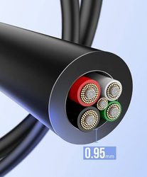 Kabel został wykonany z bezpiecznego dla środowiska tworzywa PVC, które gwarantuje mu elastyczność oraz dużą wytrzymałość. Niewątpliwym plusem jest też fakt, że naprawdę trudno go poplątać. Wewnątrz materiału znajdziemy natomiast przewód wykonany z czystej miedzi zapewniający stabilne przesyłanie danych. Do tego niklowane wtyczki dla lepszej wydajności.