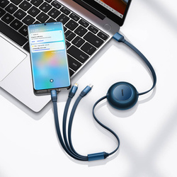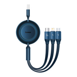 Baseus Bright Mirror 2 zwijany kabel przewód 3w1 USB Typ A - micro USB + Lightning + USB Typ C 66W 1.1m niebieski (CAMJ010103)