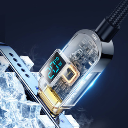 - Ładowanie swojego urządzenia masz zawsze pod kontrolą. Wbudowany wyświetlacz prezentuje w czasie rzeczywistym, jaką moc przesyła kabel do Twojego urządzenia