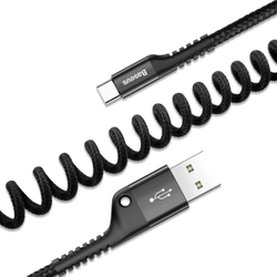 Kabel Baseus Spring umożliwia szybkie ładowanie oraz transfer danych. Kabel pozwala na ładowanie oraz transfer plików pomiędzy urządzeniami wyposażonymi w wejście USB, oraz urządzeniami wyposażonymi w wejście USB typu C. Przewód został wykonany w formacie sprężynowym, dzięki czemu nie plącze się i nie zajmuje dużo miejsca. Kabel rozciąga się do długości 1 metra, dzięki czemu podłączone urządzenie może być wygodnie obsługiwane w każdej odległości. Wzmocnione gumowe końcówki i oplot zapewniają długą żywotność. Kabel obsługuje szybkie ładowanie prądem do 2 A.