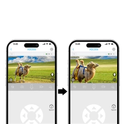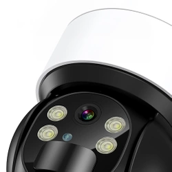 - Gwarantuje wysoką jakość obrazu i szerokie pole widzenia. Obiektyw rejestruje obraz w jakości 2K, a hybrydowy zoom i pan-tilt oferują 360-stopniowy widok.