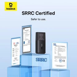 Karta sieciowa USB Baseus BS-OH170 pozwala na transmisję danych z prędkością do 650 Mb/s. Adapter ma wbudowaną diodę, która informuje o jakości połączenia. Obsługuje połączenia bezprzewodowe na paśmie 2,4 GHz i 5 GHz. Zapewnia wysoką moc połączenia - aż 20 dBm.