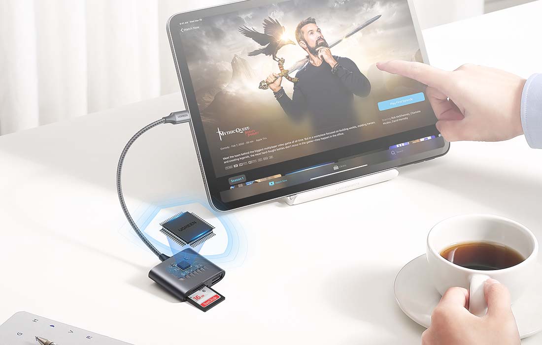 Zwiększ efektywność swojej pracy. Czytnik UGREEN CM387 pozwala odczytywać dane z 2 kart pamięci jednocześnie, a dzięki interfejsowi USB-C zapewnia niezawodne, szybkie połączenie. Ma także wbudowany port USB, który umożliwia podłączenie dodatkowego sprzętu.
