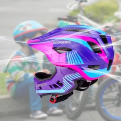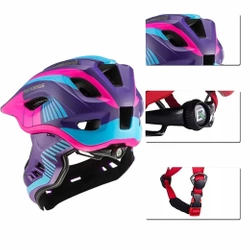 Kask rowerowy Rockbros TT-32SBPP-M dziecięcy z odpinaną szczęką w rozmiarze M - fioletowo-różowy