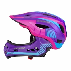 Kask rowerowy Rockbros TT-32SBPP-S dziecięcy z odpinaną szczęką w rozmiarze S - fioletowo-różowy