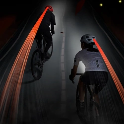 - Wbudowane tylne światło LED: 8 diod z trzema trybami świecenia (ciągły, szybki błysk, obracający się) zapewniają widoczność i bezpieczeństwo po zmroku.