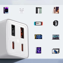 • Wieloportowe ładowanie 100W: Dwa porty USB-C i dwa USB-A pozwalają na jednoczesne zasilanie kilku urządzeń – laptopa, telefonu, smartwatcha i słuchawek.