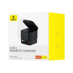 Ładowarka bezprzewodowa 2w1 Baseus BS-W531 kompatybilna z MagSafe i Qi, z rozwijanym kablem USB-C - czarna