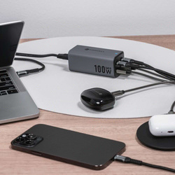 Ładowarka biurkowa wykonana w technologii GaN III, o łącznej mocy 100 W. Funkcje ładowania Quick Charge 4.0, Power Delivery oraz Super Fast Charging 2.0 pozwalają na szybkie ładowanie zarówno telefonów i tabletów, jak i laptopów. Posiada cztery porty – dwa USB-C i dwa USB-A – i umożliwia zasilanie czterech urządzeń jednocześnie.